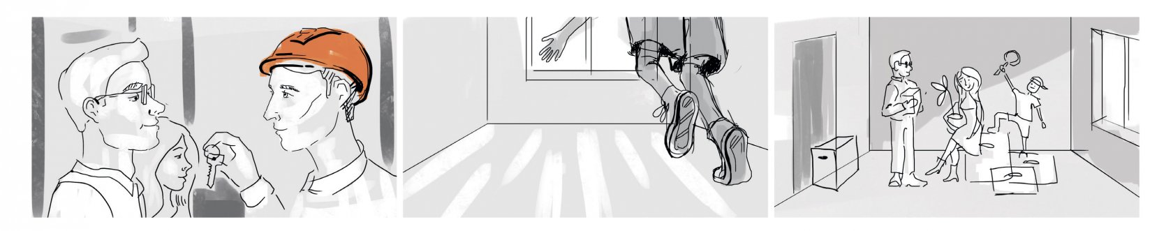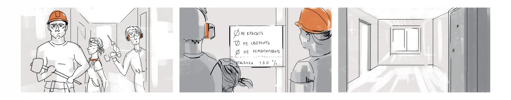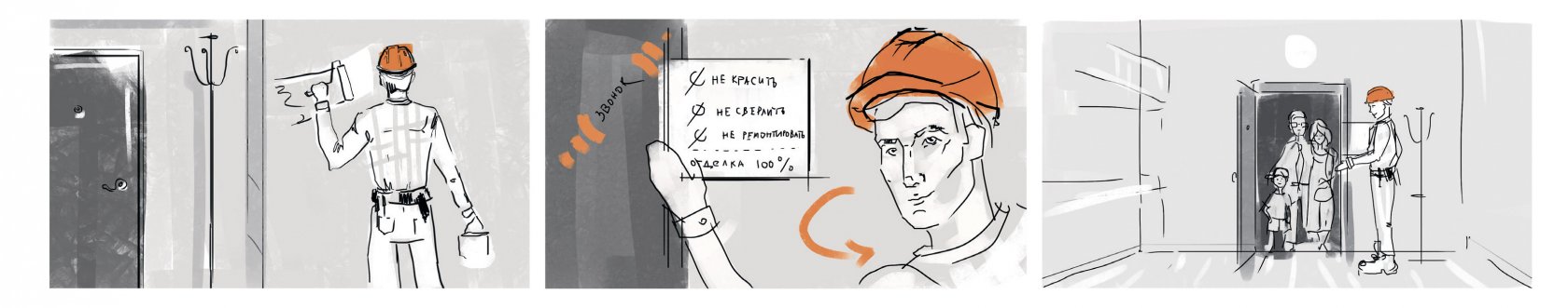 В этот момент голос диктора говорит: «Хотите, чтобы новая квартира была идеальной? Доверяете работу профессионалам? Нужно сделать быстро и качественно?»